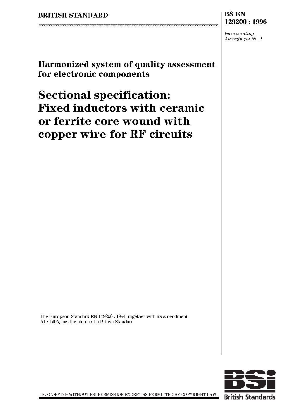 Harmonized system of quality assessment for electronic components. Sectional specification: fixed inductors with ceramic or ferrite core wound with copper wire for RF circuits