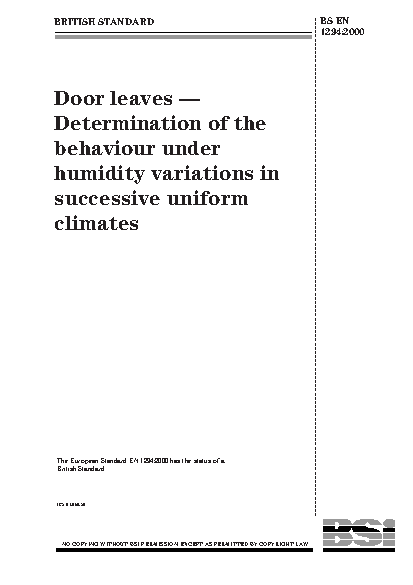 Door leaves. Determination of the behaviour under humidity variations in successive uniform climates