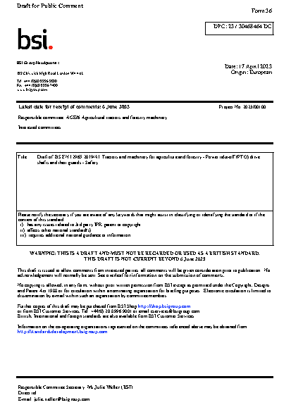 Mechanical transmission systems;Forestry equipment;Machine guards;Drive shafts;Equipment safety;Agricultural equipment;Verification;Power take-off;Agricultural tractors;Hazards;Safety devices;Power transmission systems;Shaft couplings;Tractors
