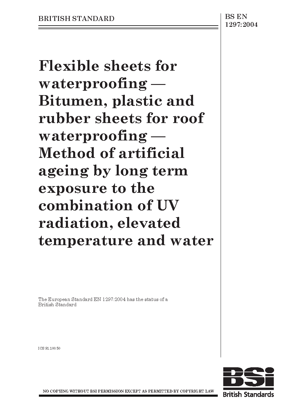 Waterproof materials;Water;Artificial ageing tests;Rubber;Plastics;Ultraviolet radiation;High temperatures;Waterproofing materials;Flexible materials;Heat ageing tests;Long-term;Sheet materials;Bitumens