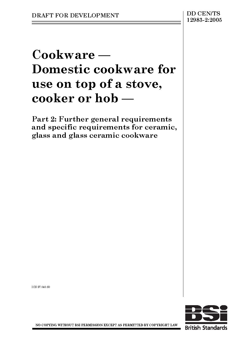 Cookware. Domestic cookware for use on top of a cooking range or hob Additional requirements ceramic and glass lid