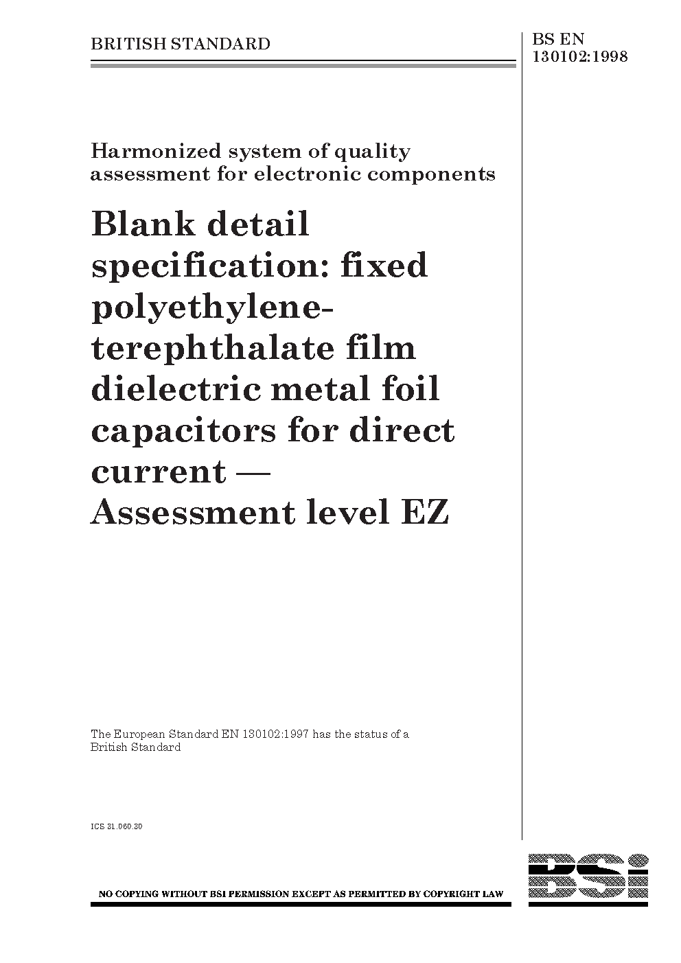 Harmonized system of quality assessment for electronic components. Blank detail specification: fixed polyethylene-terephthalate film dielectric metal foil capacitors for direct current. Assessment level EZ
