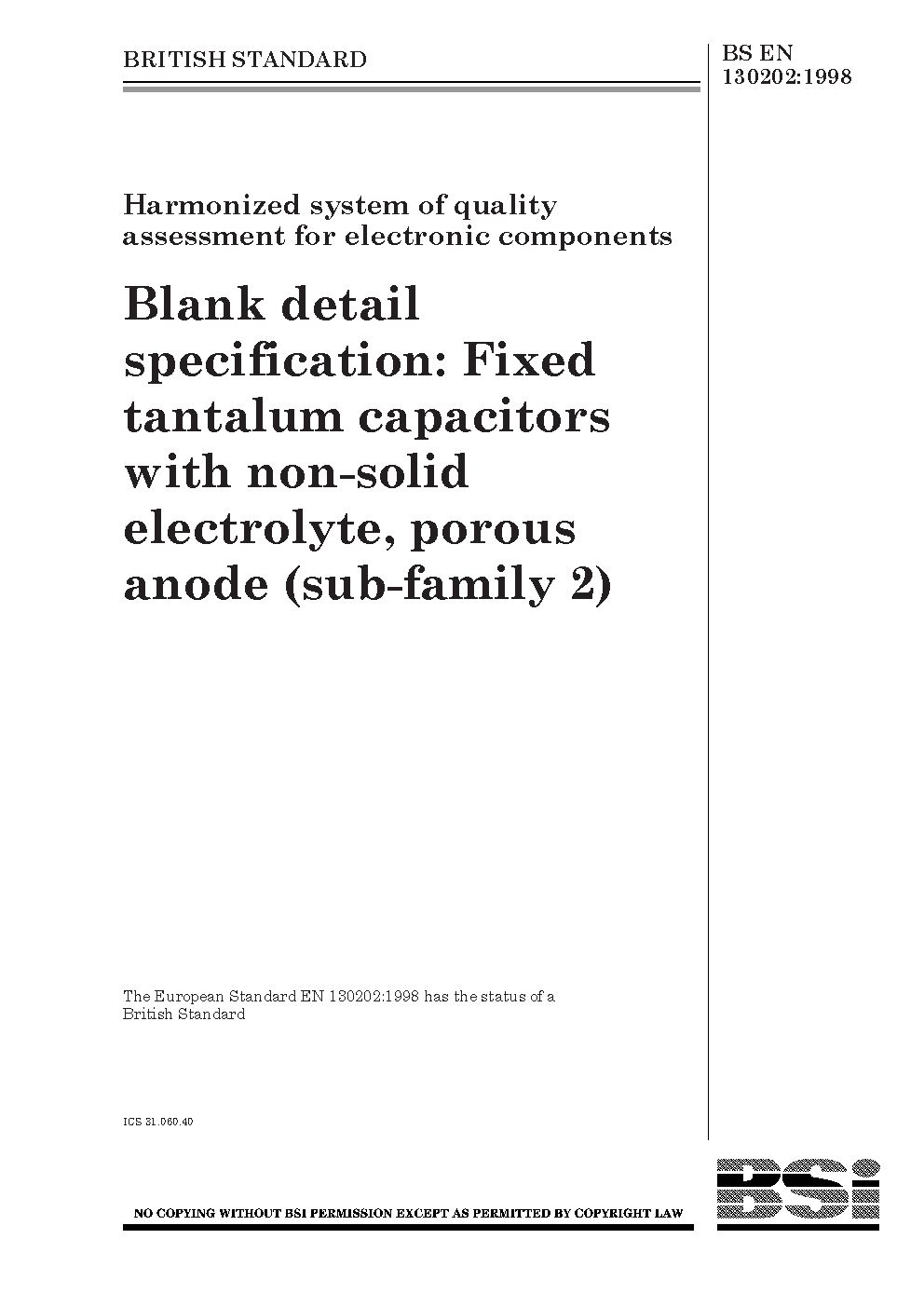 Harmonized system of quality assessment for electronic components. Blank detail specification: fixed tantalum capacitors with non-solid electrolyte, porous anode (sub-family 2)