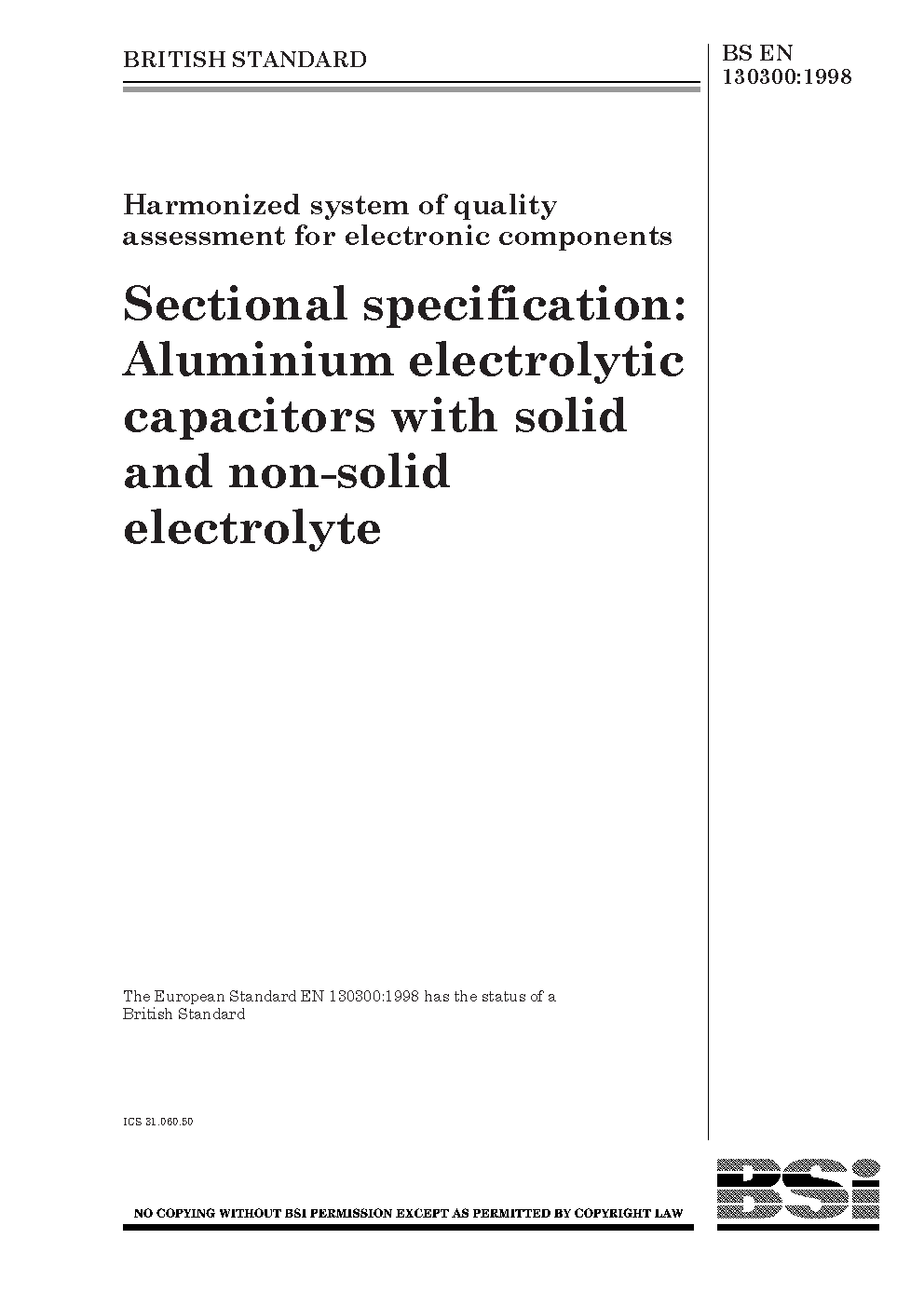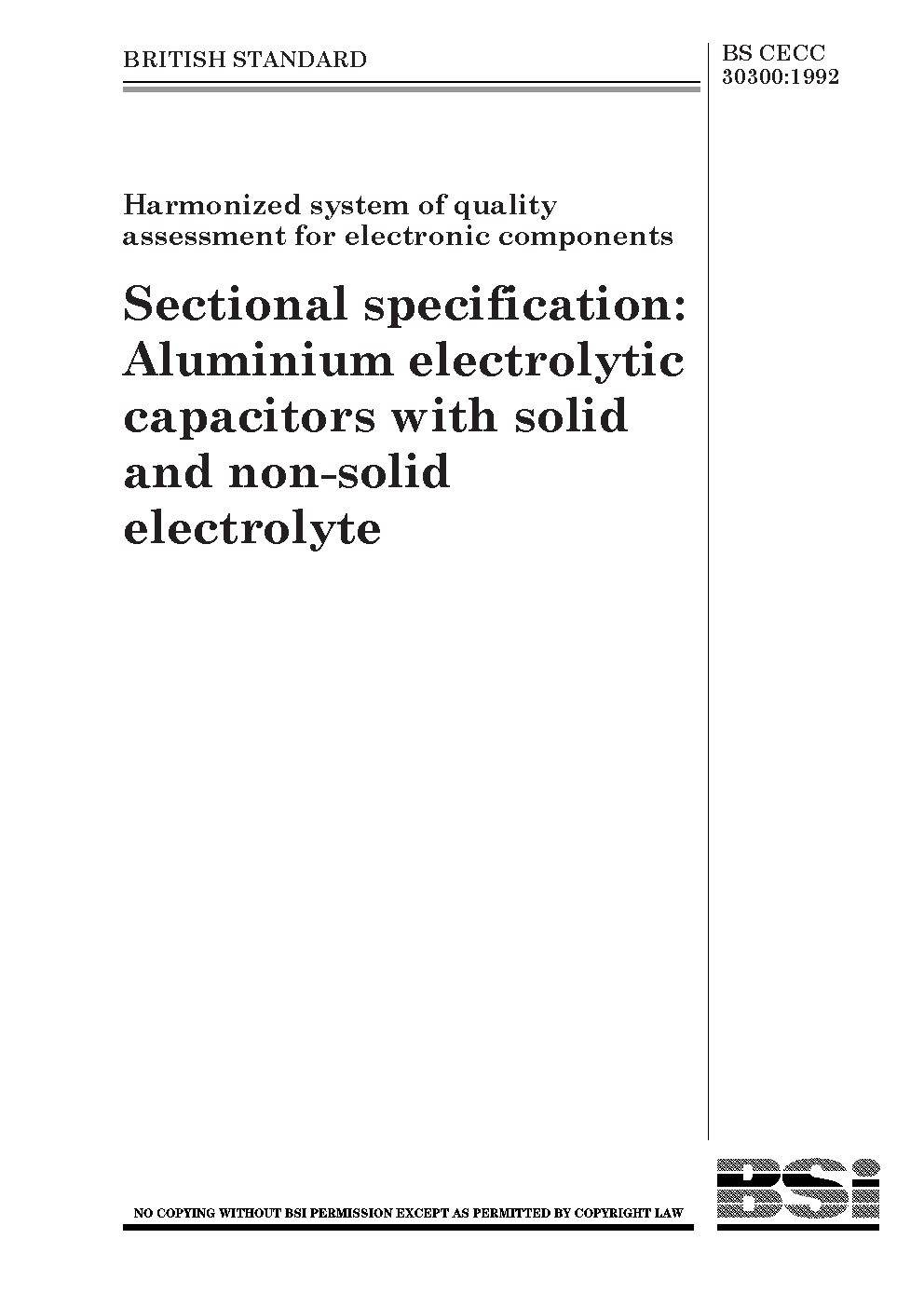 Harmonized system of quality assessment for electronic components. Sectional specification:aluminium electrolytic capacitors with solid and non-solid electrolyte