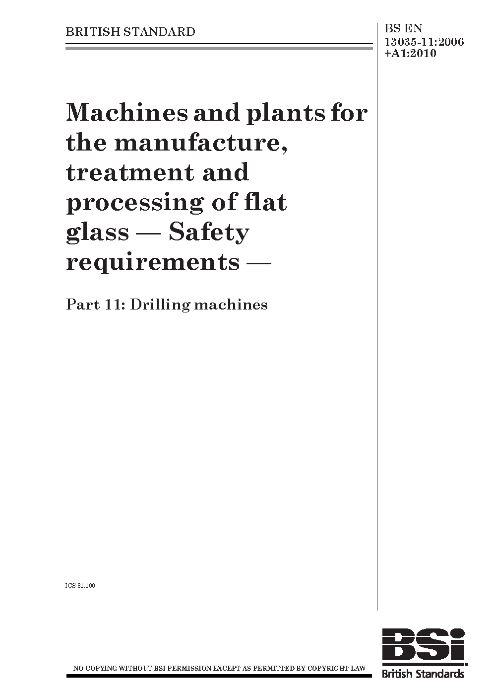 Drilling machines;Control devices;Production equipment;Equipment safety;Flat glass;Machine tools;Instructions for use;Hazards;Noise (environmental);Safety measures;Safety devices;Glass;Verification;Occupational safety