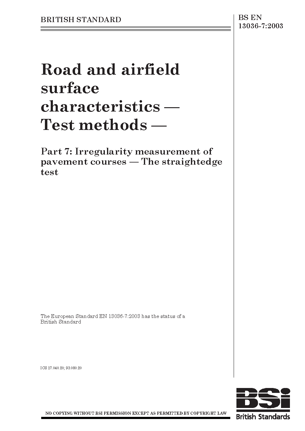 Road and airfield surface characteristics. Test methods Irregularity measurement of pavement courses. The straightedge test