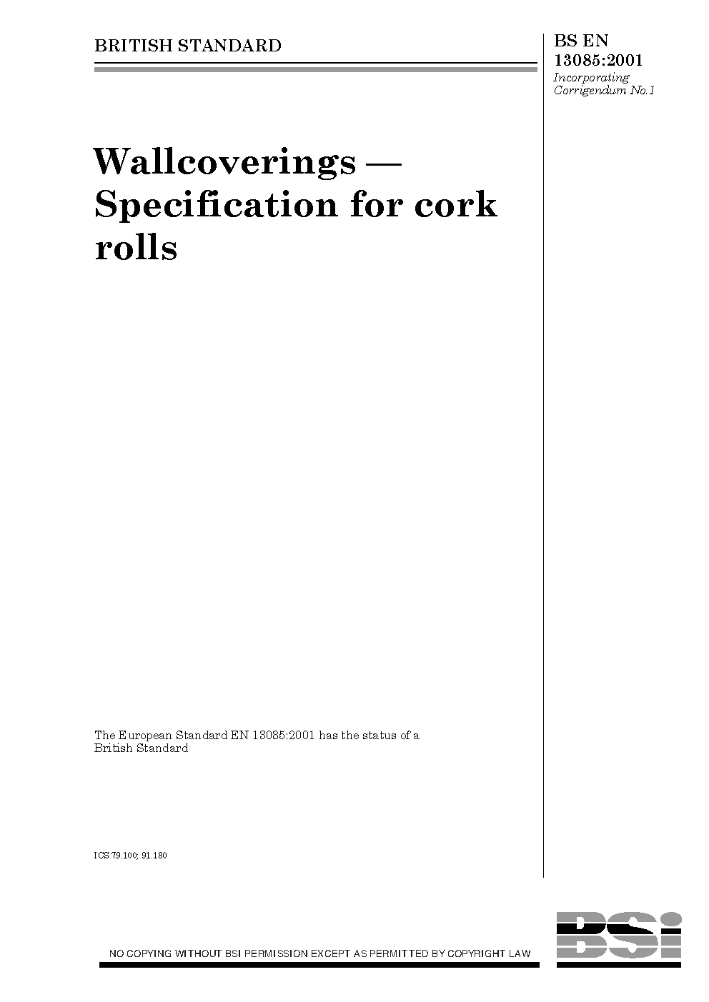 Packaging;Cork;Tensile strength;Wall coverings;Construction systems parts;Quality control;Flexibility;Moisture;Type testing;Sheet materials;Dimensional tolerances;Rolls