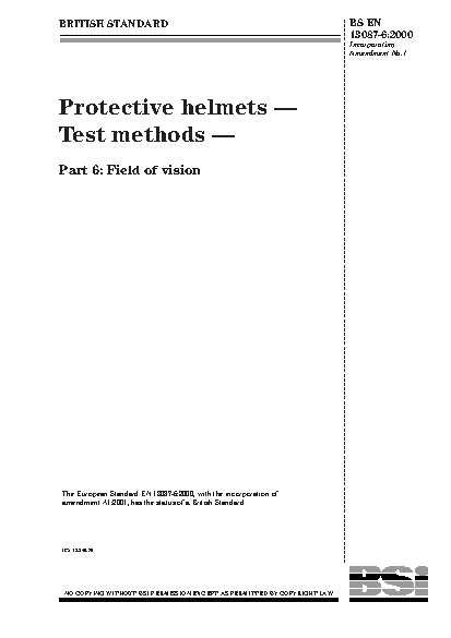 Field of vision;Performance testing;Visual perception;Occupational safety;Protective clothing;Helmets (protective)