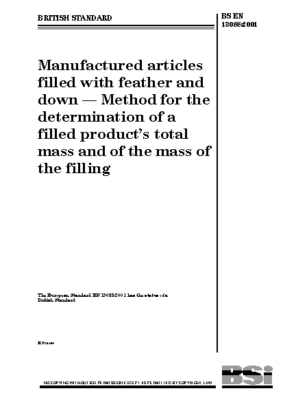 Manufactured articles filled with feather and down. Method for the determination of a filled product's total mass and for the determination of the mass of the filling