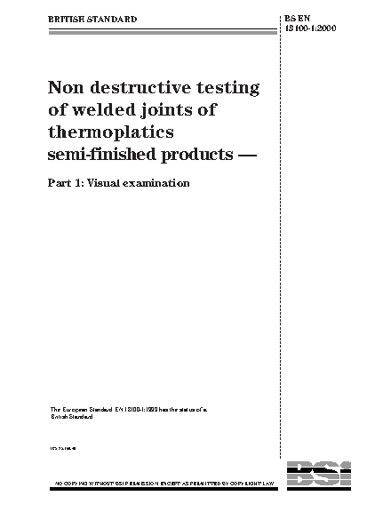 Non-destructive testing;Thermoplastic polymers;Welding;Visual inspection (testing);Plastics;Semi-finished products;Testing conditions;Welded joints;Reports