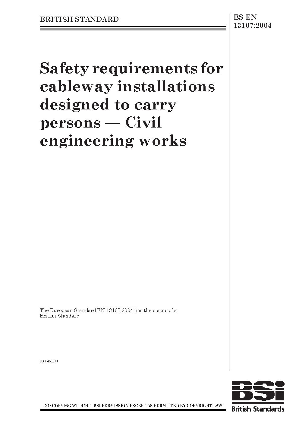 Safety requirements for cableway installations designed to carry persons. Civil engineering works