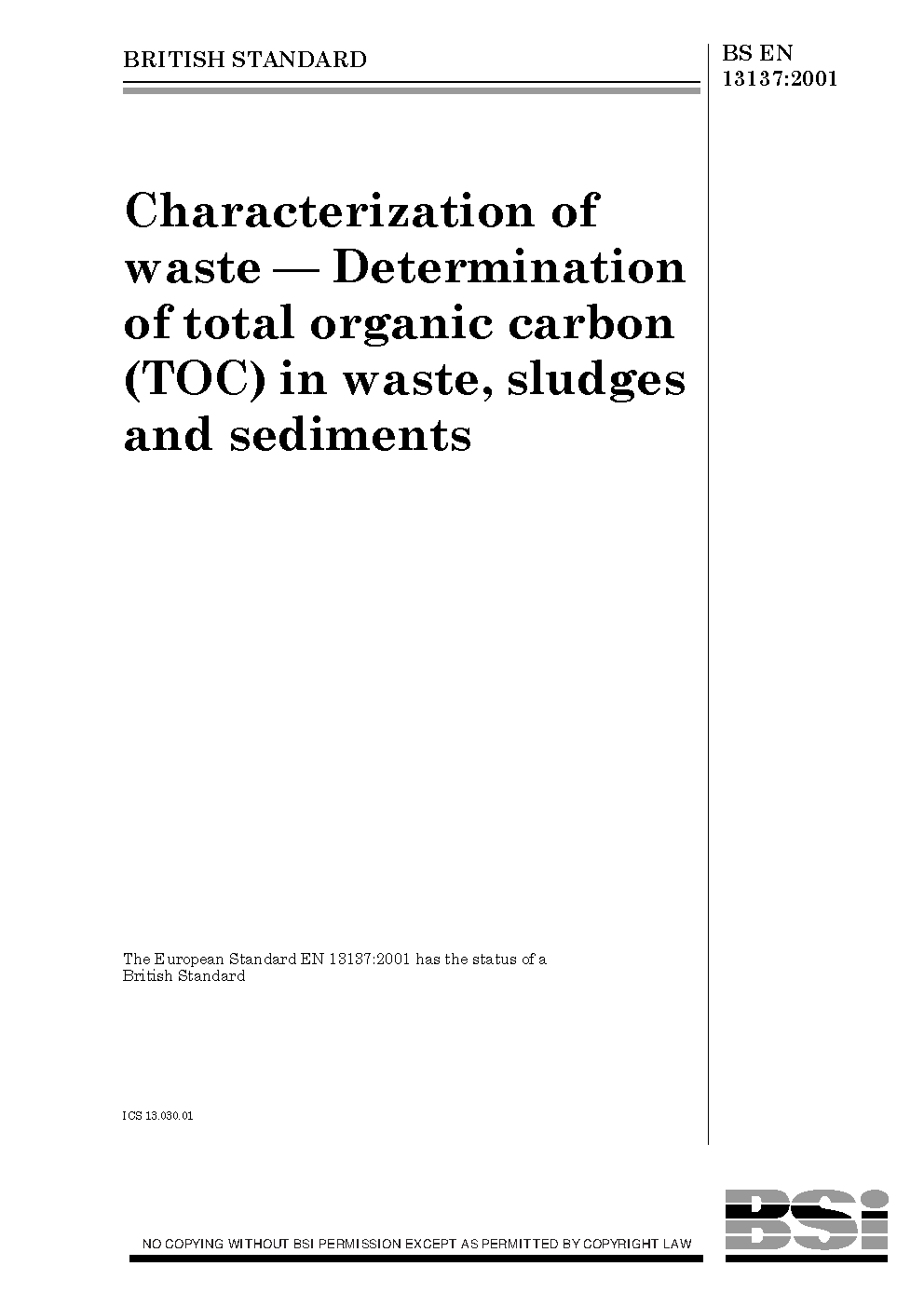 Characterisation of waste. Determination of total organic carbon (TOC) in waste, sludges and sediments