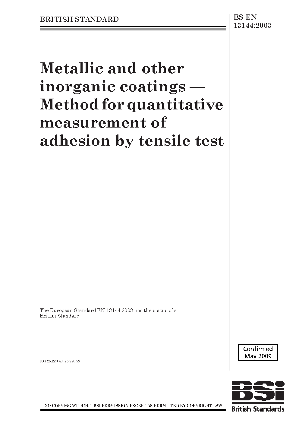 Metallic and other inorganic coatings. Method for quantitative measurement of adhesion by tensile test