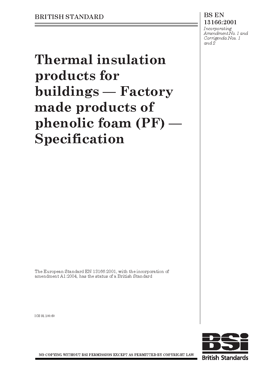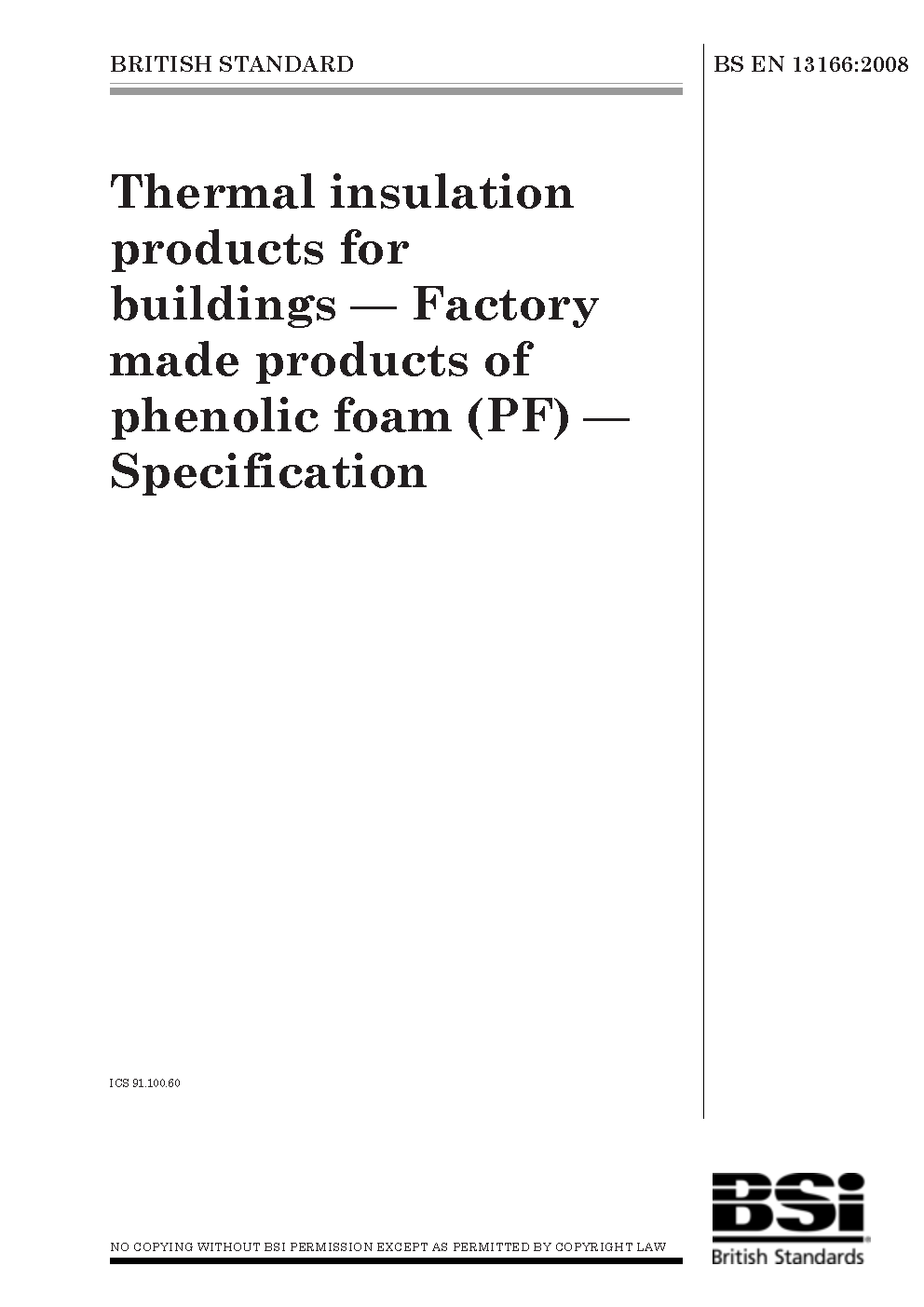 Thermal insulation products for buildings. Factory made products of phenolic foam (PF). Specification