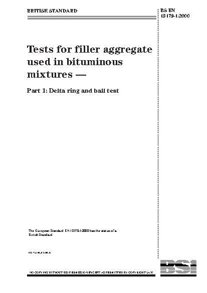 Tests for filler aggregate used in bituminous mixtures Delta ring and ball test