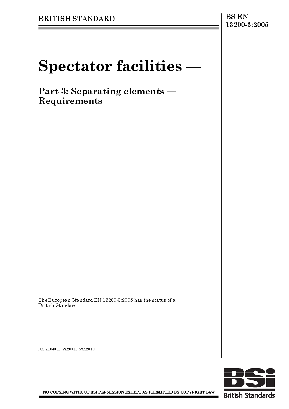 Crush barriers;Spectator facilities;Construction works;Buildings open to the public;Sports facilities;Safety devices;Protective barriers;Layout;Stadia;Assembly facilities;Crowd safety;Entertainment facilities