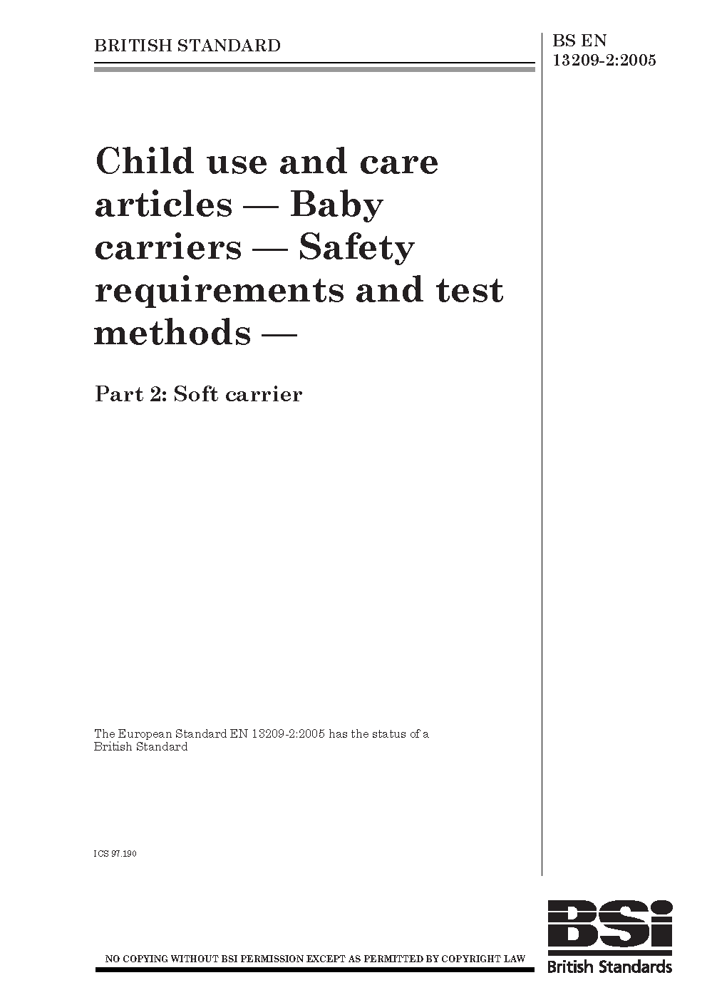 Child use and care articles. Baby carriers. Safety requirements test methods Soft carrier