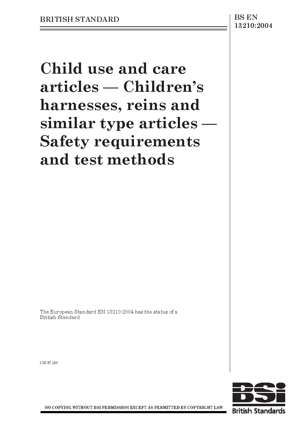 Child care articles. Children's safety harnesses, reins and similar type articles. Safety requirements and test methods