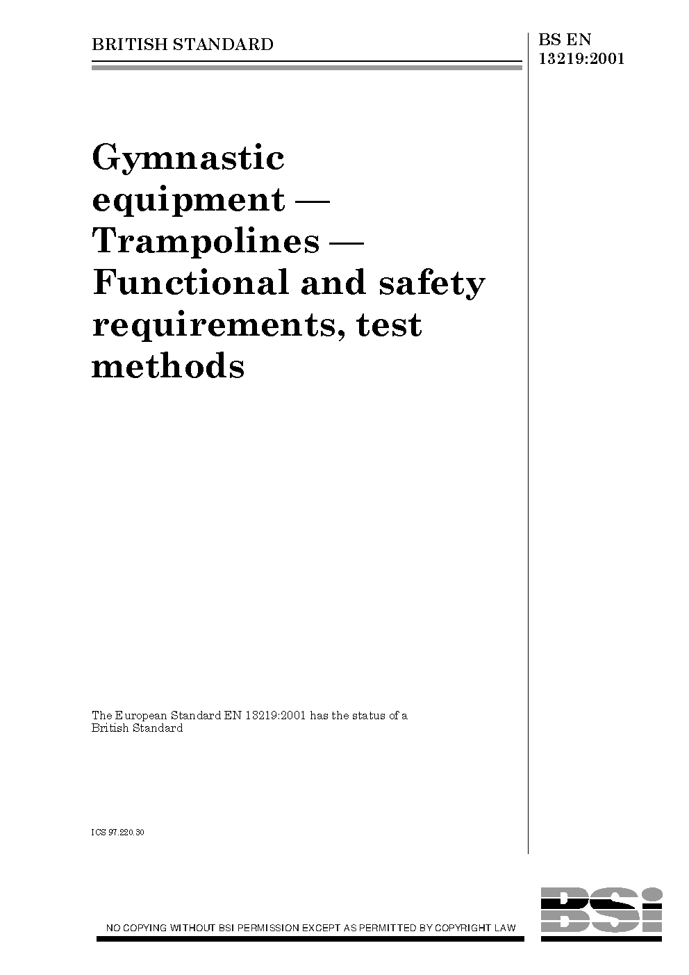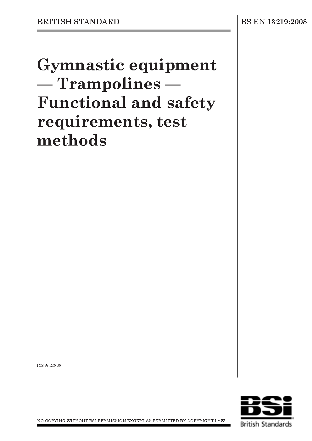 Gymnastic equipment. Trampolines. Functional and safety requirements, test methods