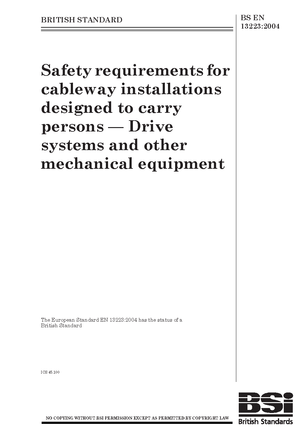 Safety requirements for cableways installations designed to carry persons. Drive systems and other mechanical equipment