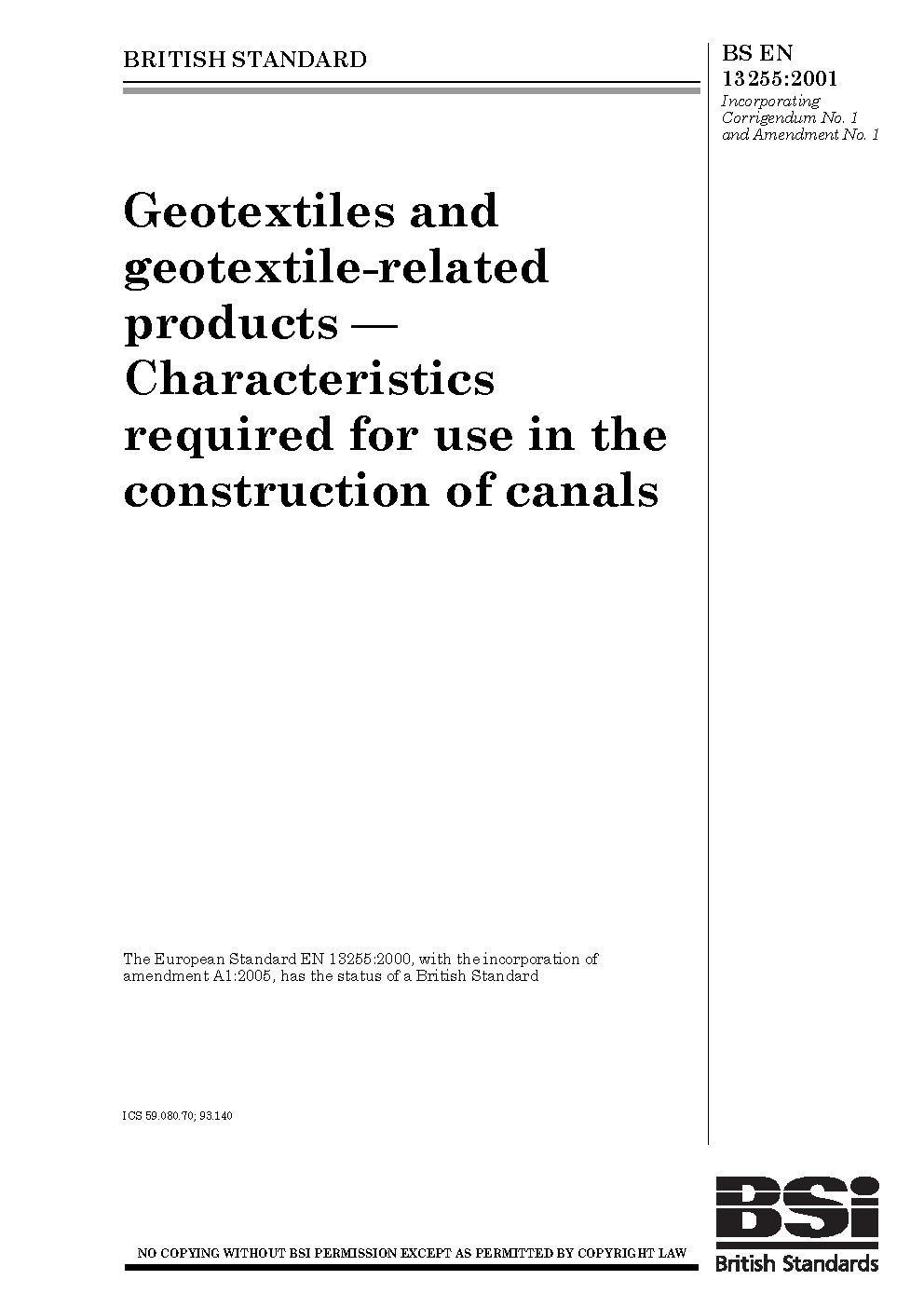 Geotextiles and geotextile-related products. Characteristics required for use in the construction of canals