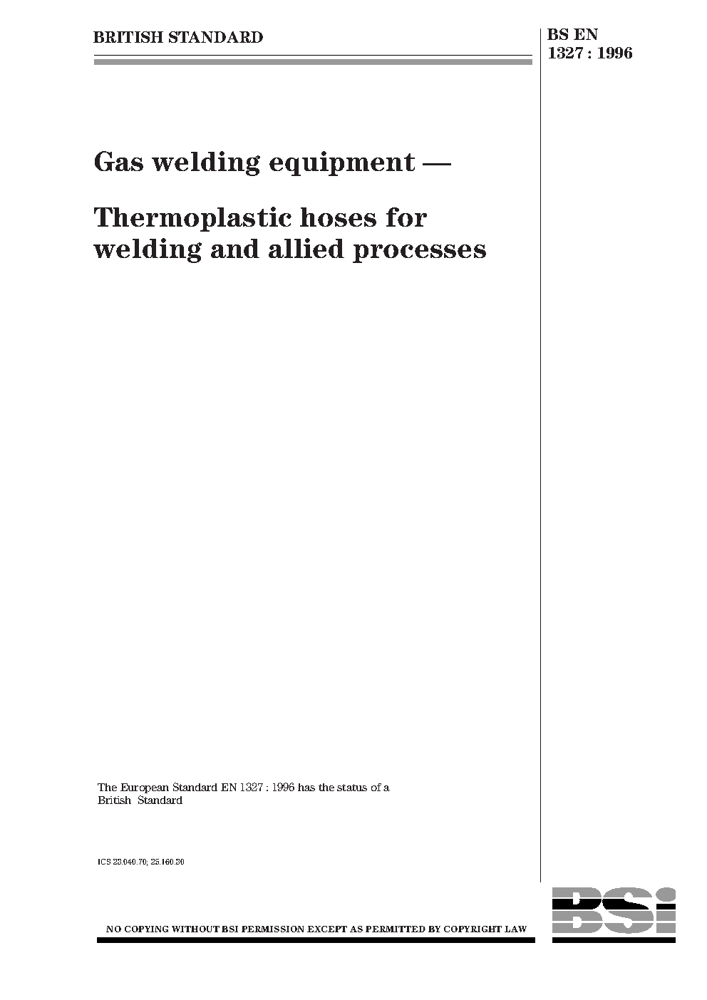 Gas welding equipment. Thermoplastic hoses for welding and allied processes