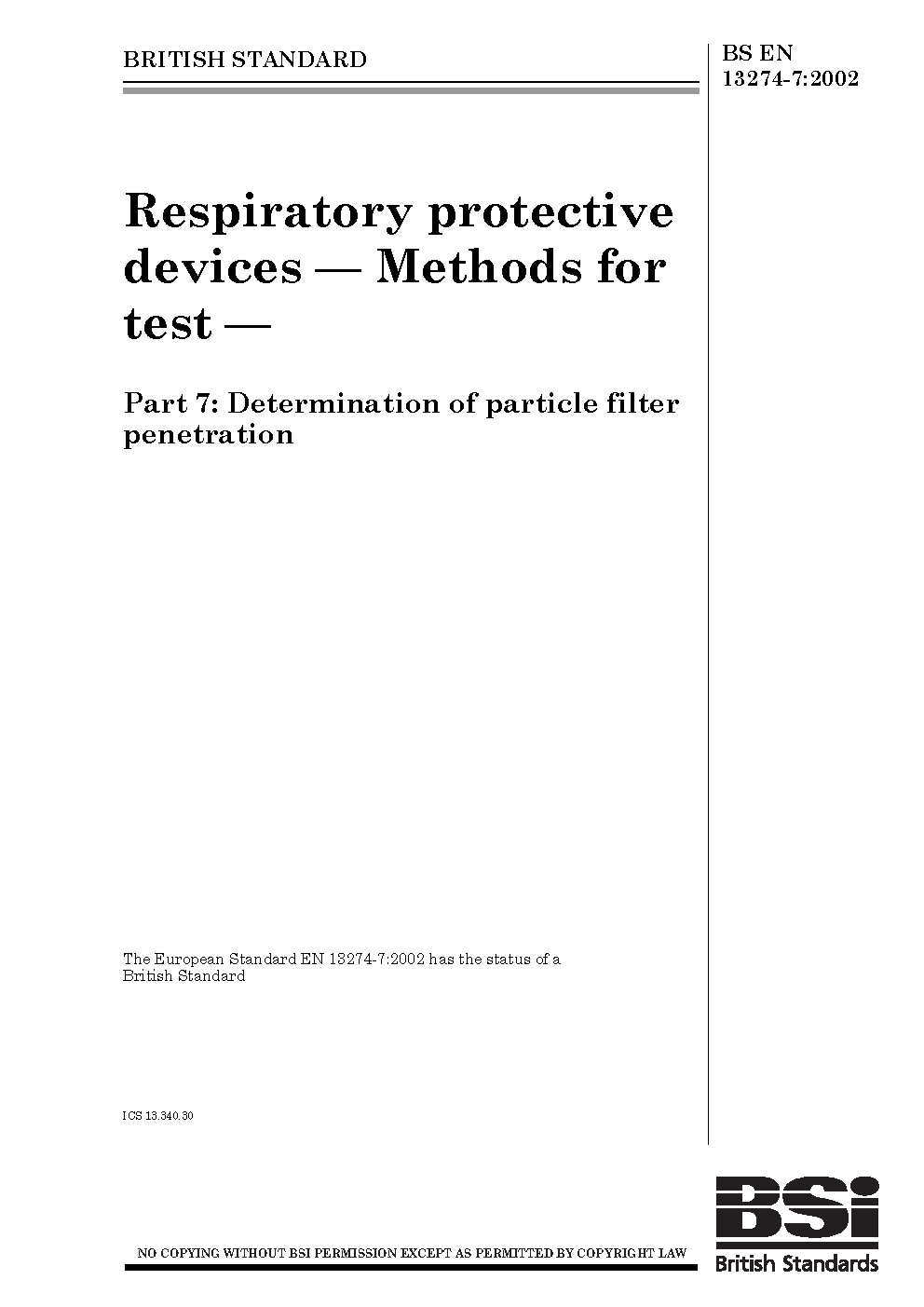 Respirators;Masks (protective clothing);Breathing apparatus;Filters;Safety devices;Penetration tests;Mechanical testing;Supplied air breathing apparatus;Particulate materials;Occupational safety