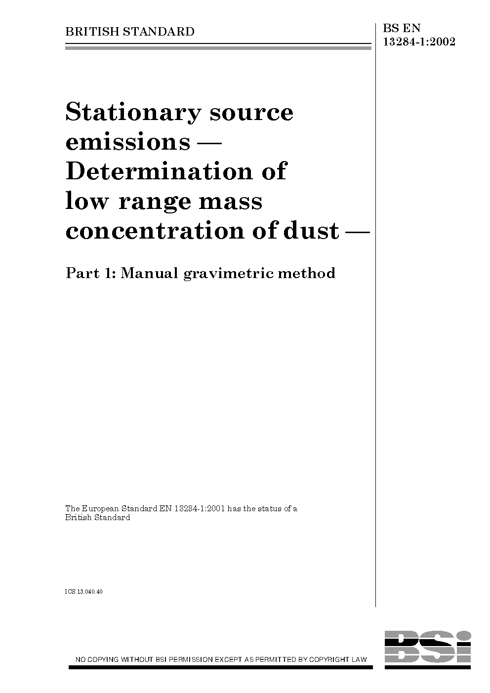 Stationary source emissions. Determination of low range mass concentration dust Manual gravimetric method