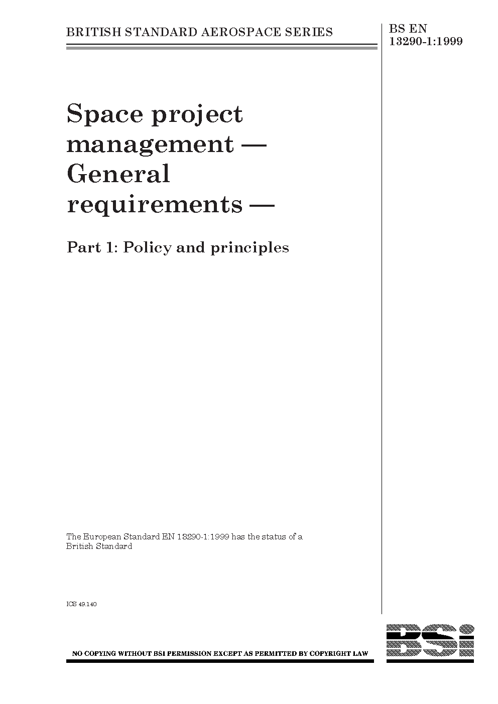 Space project management. General requirements Policy and principles