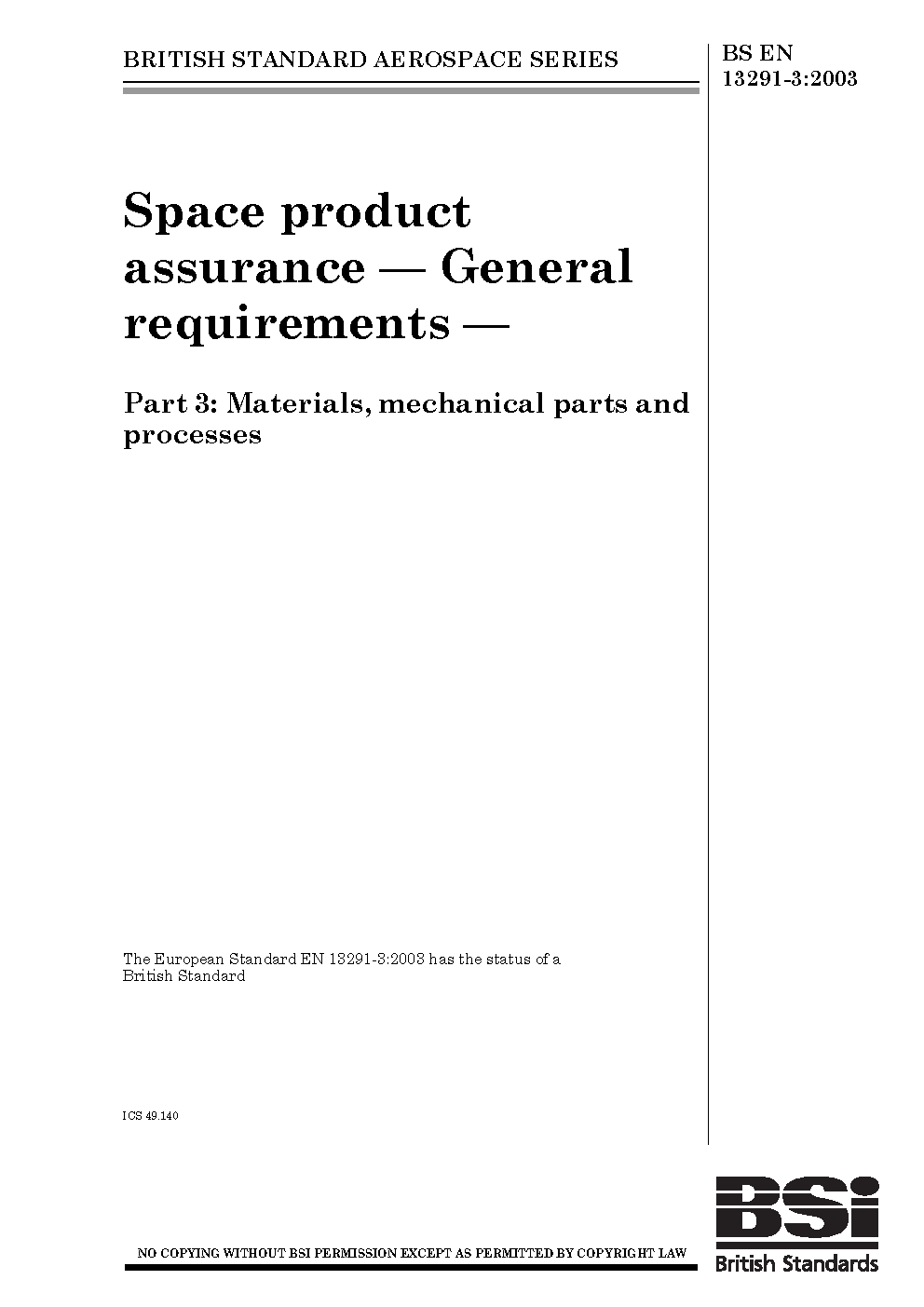 Space products assurance. General requirements Materials, mechanical parts and processes