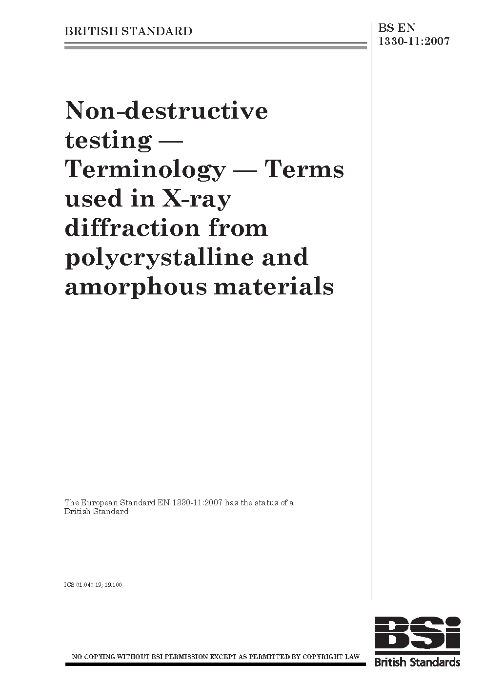 X-ray diffraction analysis;Amorphous state;Crystals;Crystallography;Terminology;X-ray analysis;Non-destructive testing;Vocabulary