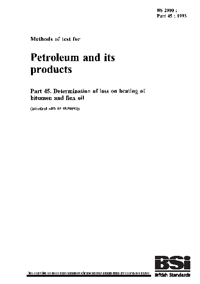 Methods of test for petroleum and its products. BS 2000-506. Bitumen and bituminous binders. Determination of the loss in mass after heating of industrial bitumens