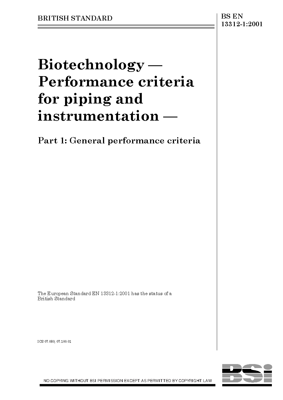 Biotechnology. Performance criteria for piping and instrumentation General performance