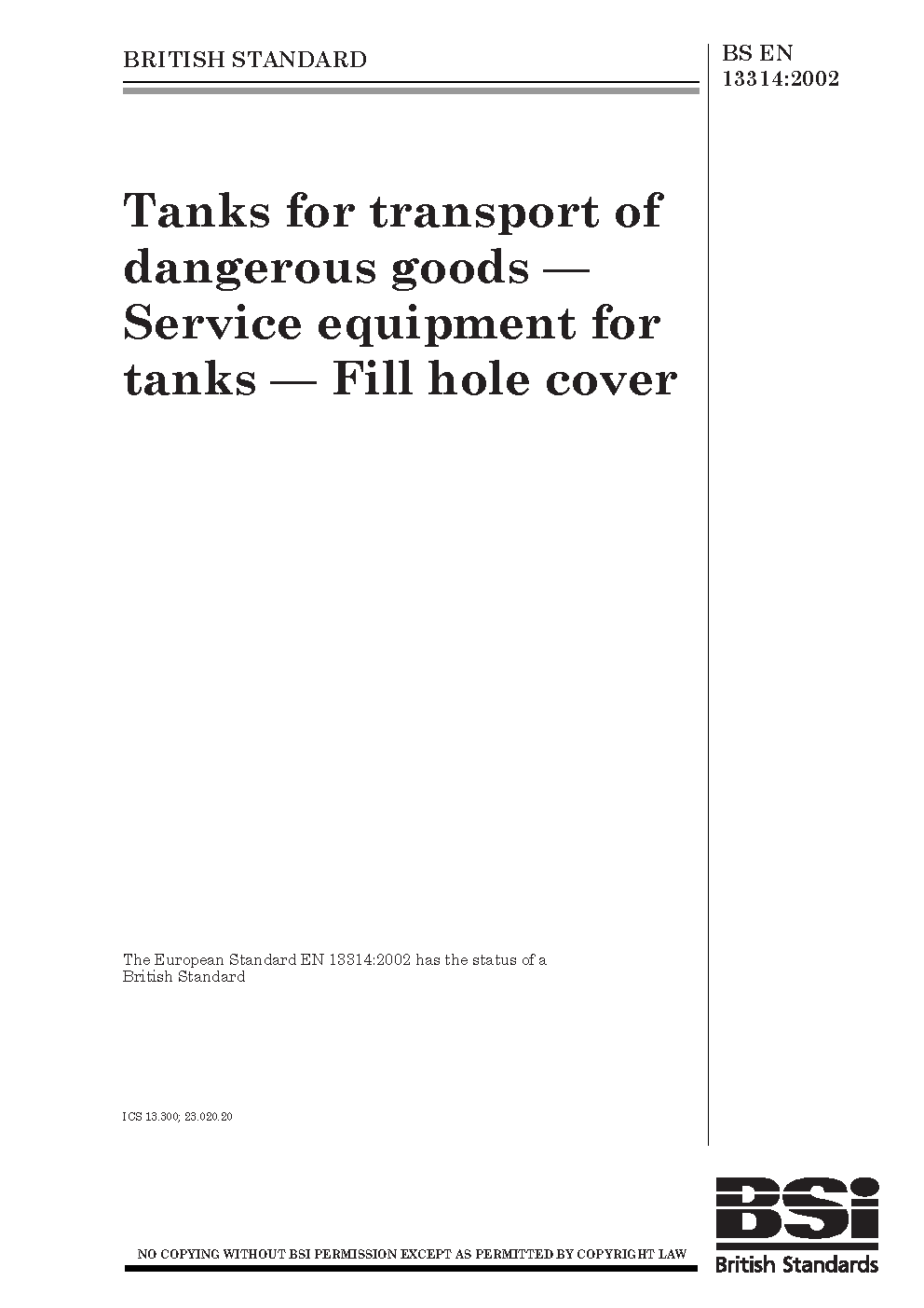 Tanks for transport of dangerous goods. Service equipment for tanks. Fill hole cover