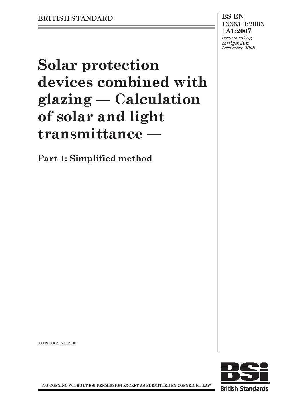 BS EN 13363-1:2003+A1:2007