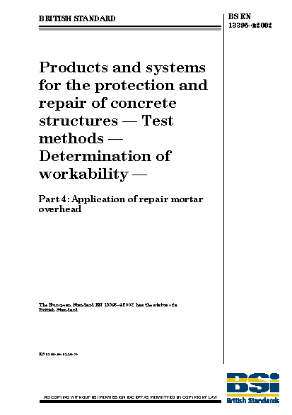 Products and systems for the protection repair of concrete structures. Test methods. Determination workability Application mortar overhead