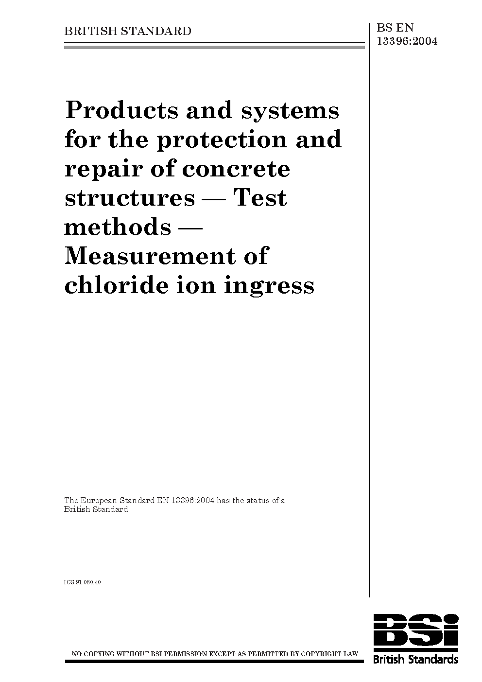 Products and systems for the protection and repair of concrete structures. Test methods. Measurement of chloride ion ingress