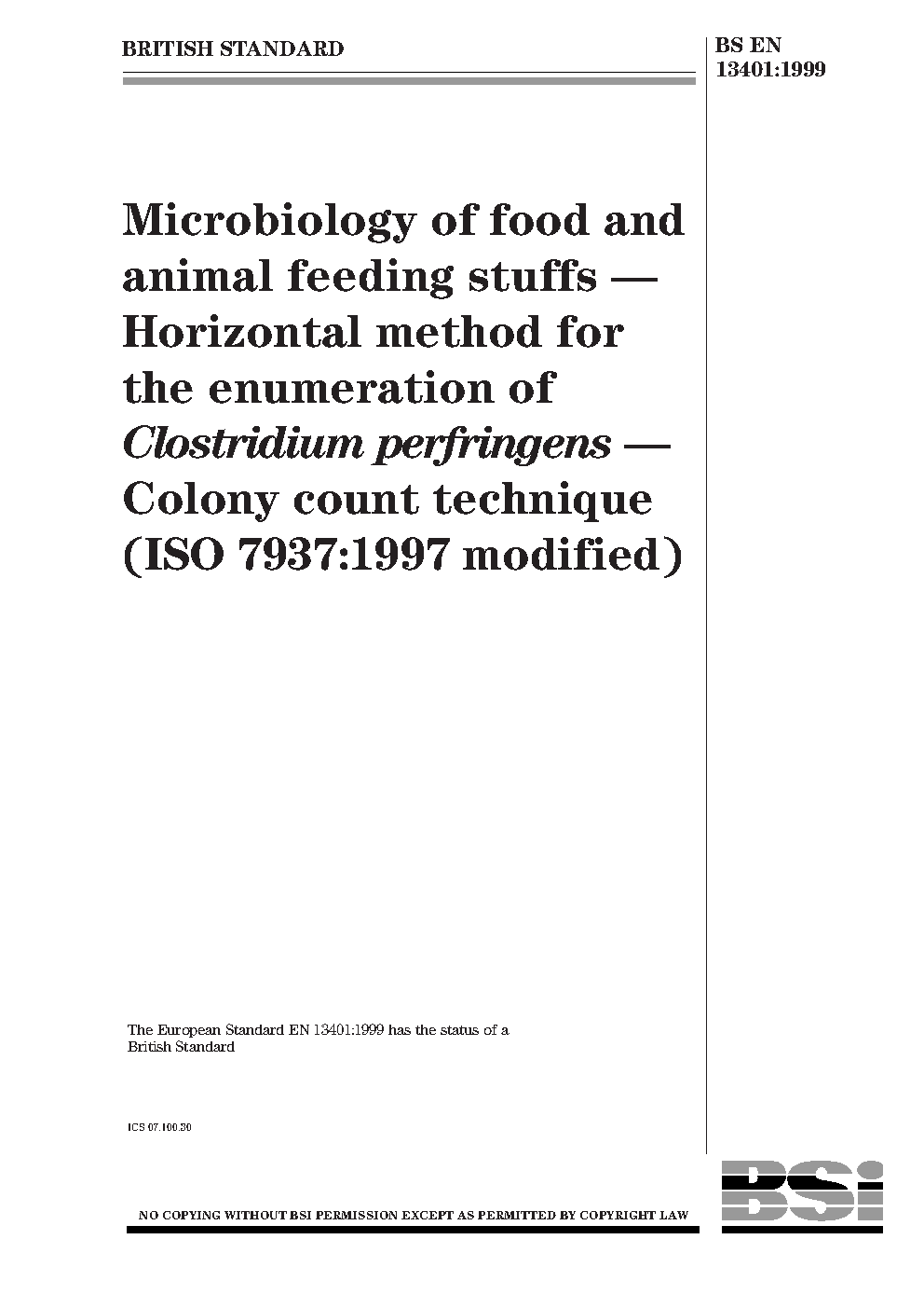 Microbiology of food and animal feeding stuffs. Horizontal method for the enumeration of Clostridium perfringens. Colony count technique