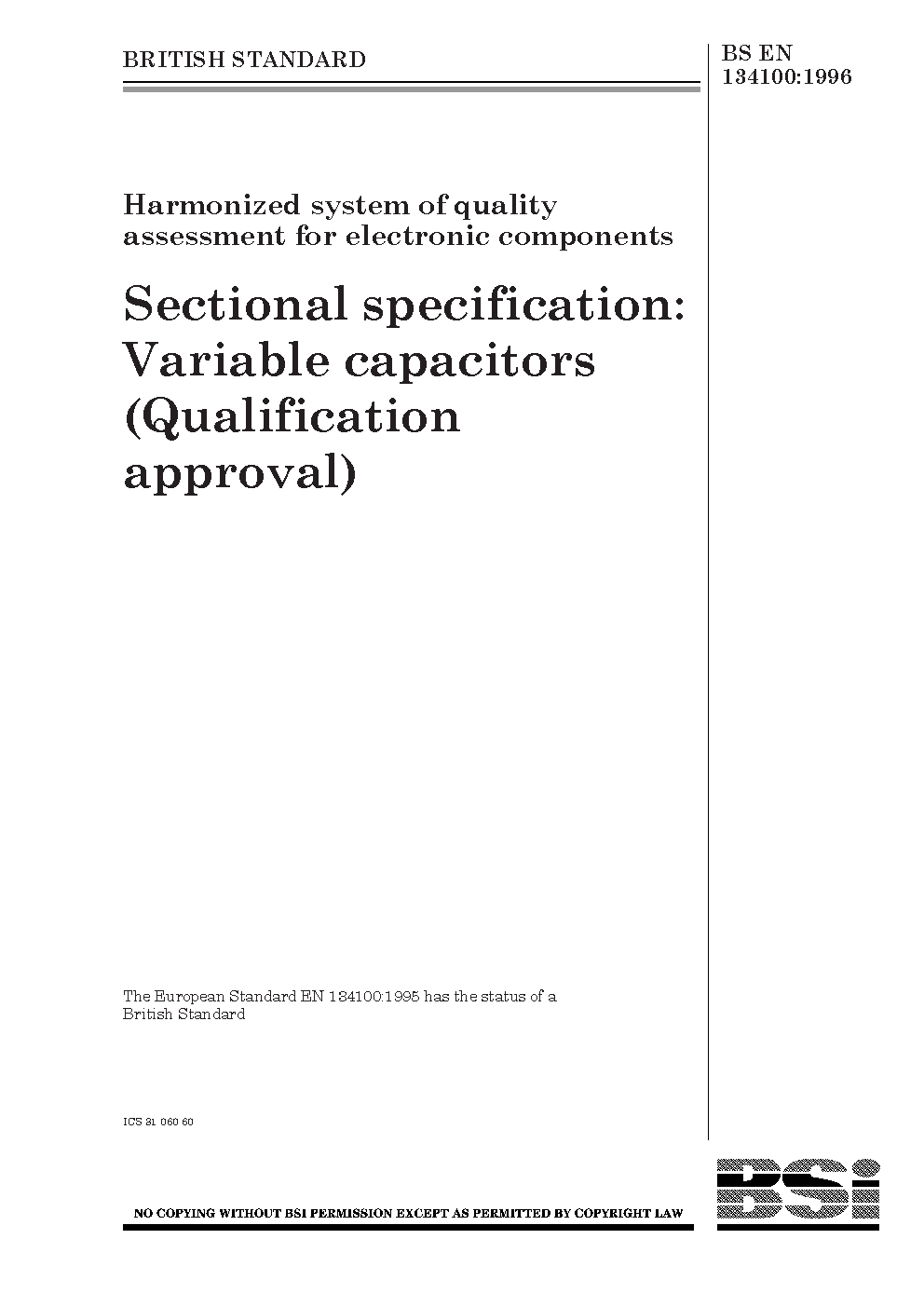 Harmonized system of quality assessment for electronic components. Sectional specification: variable capacitors (Qualification approval)