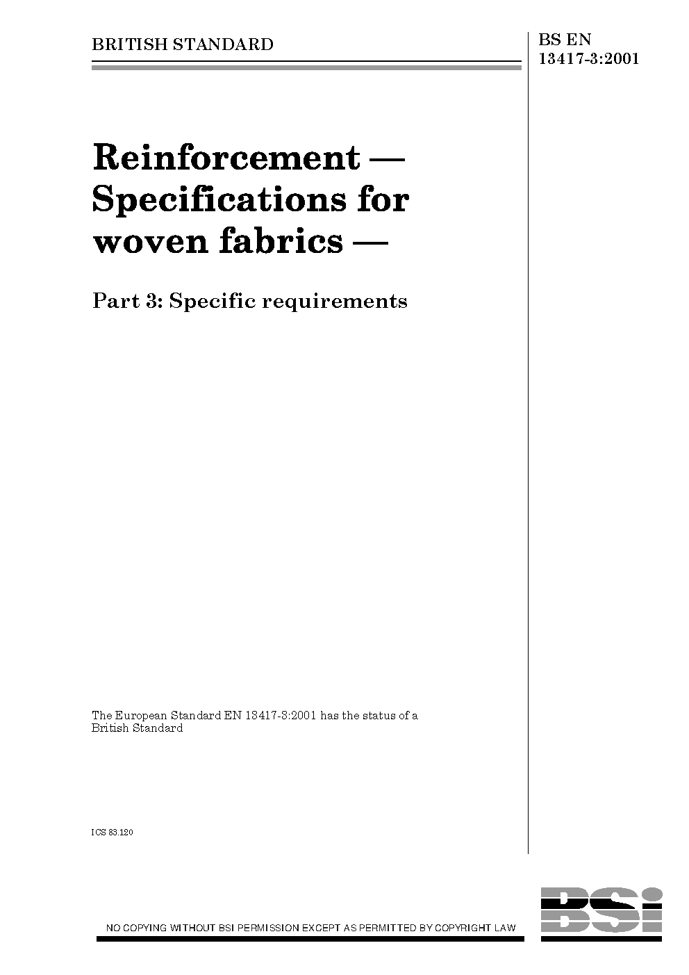 Reinforcement. Specifications for woven fabrics Specific Requirements