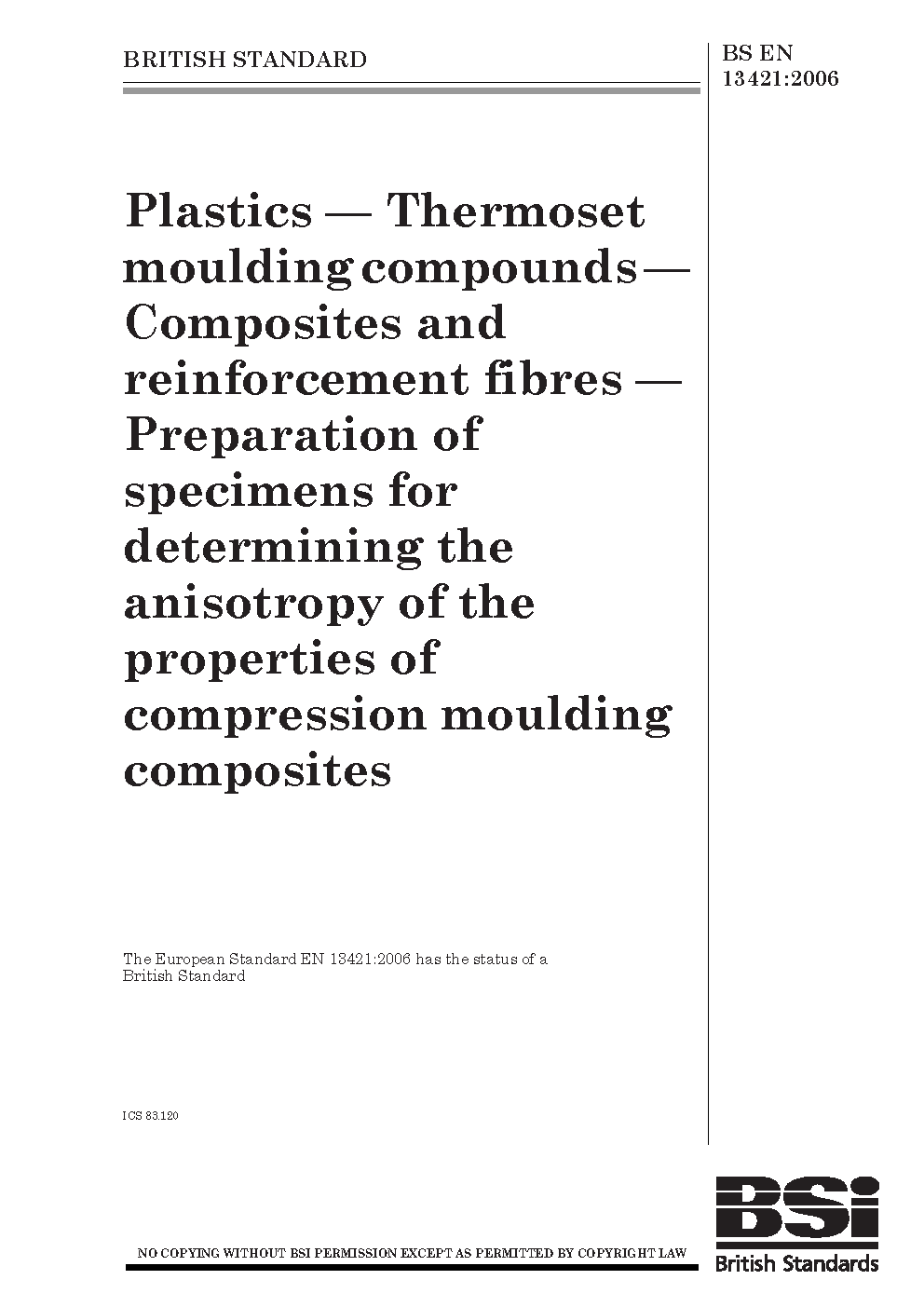 Plastics. Thermoset moulding compounds. Composites and reinforcement fibres. Preparation of specimens for determining the anisotropy of the properties of compression moulding composites