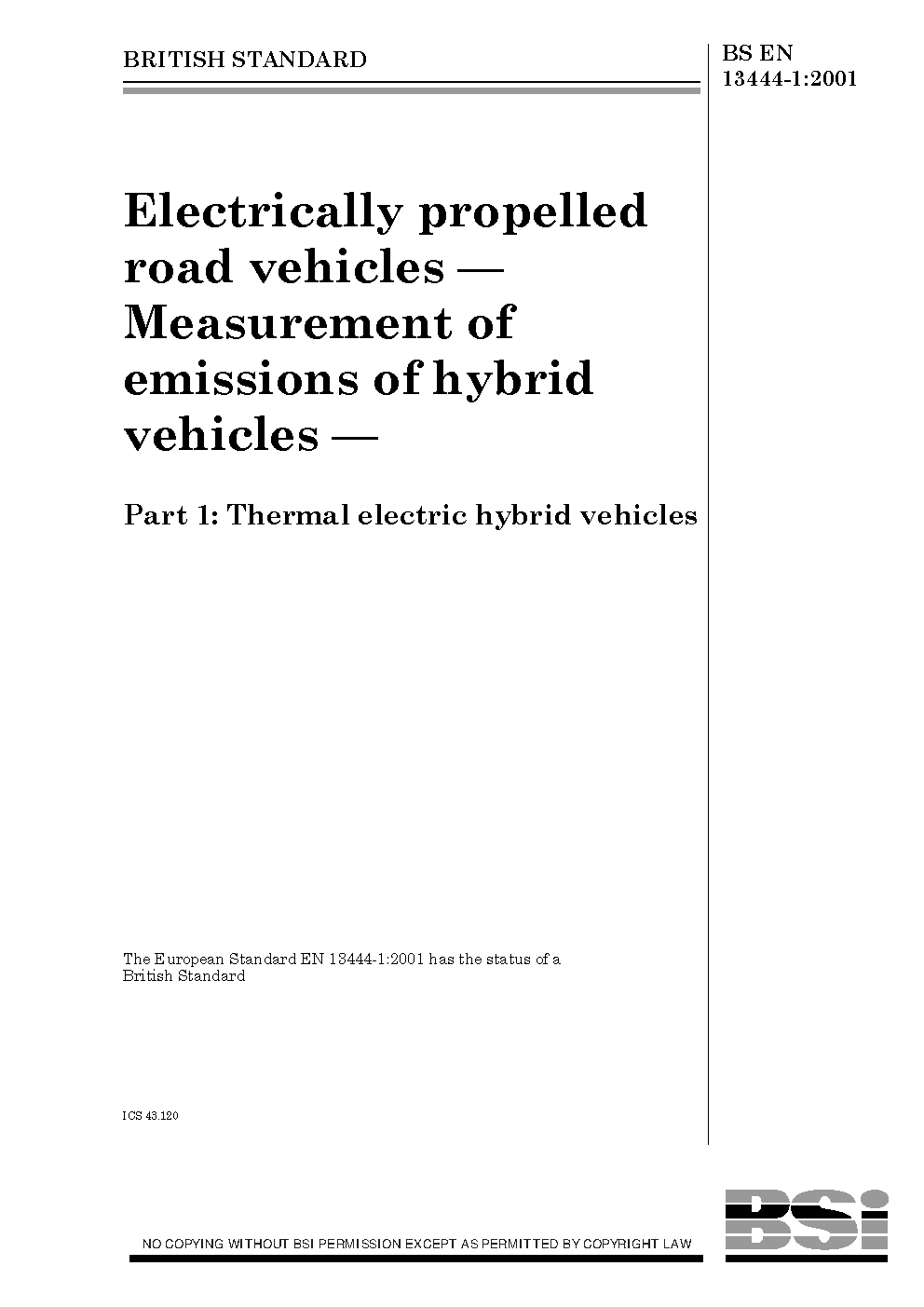 Electrically propelled road vehicles. Measurement of emissions hybrid vehicles Thermal electric