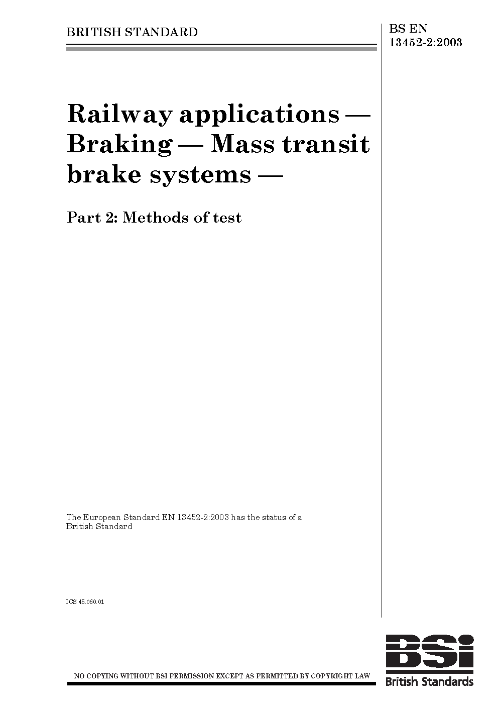 Railway applications. Braking. Mass transit brake systems Methods of test