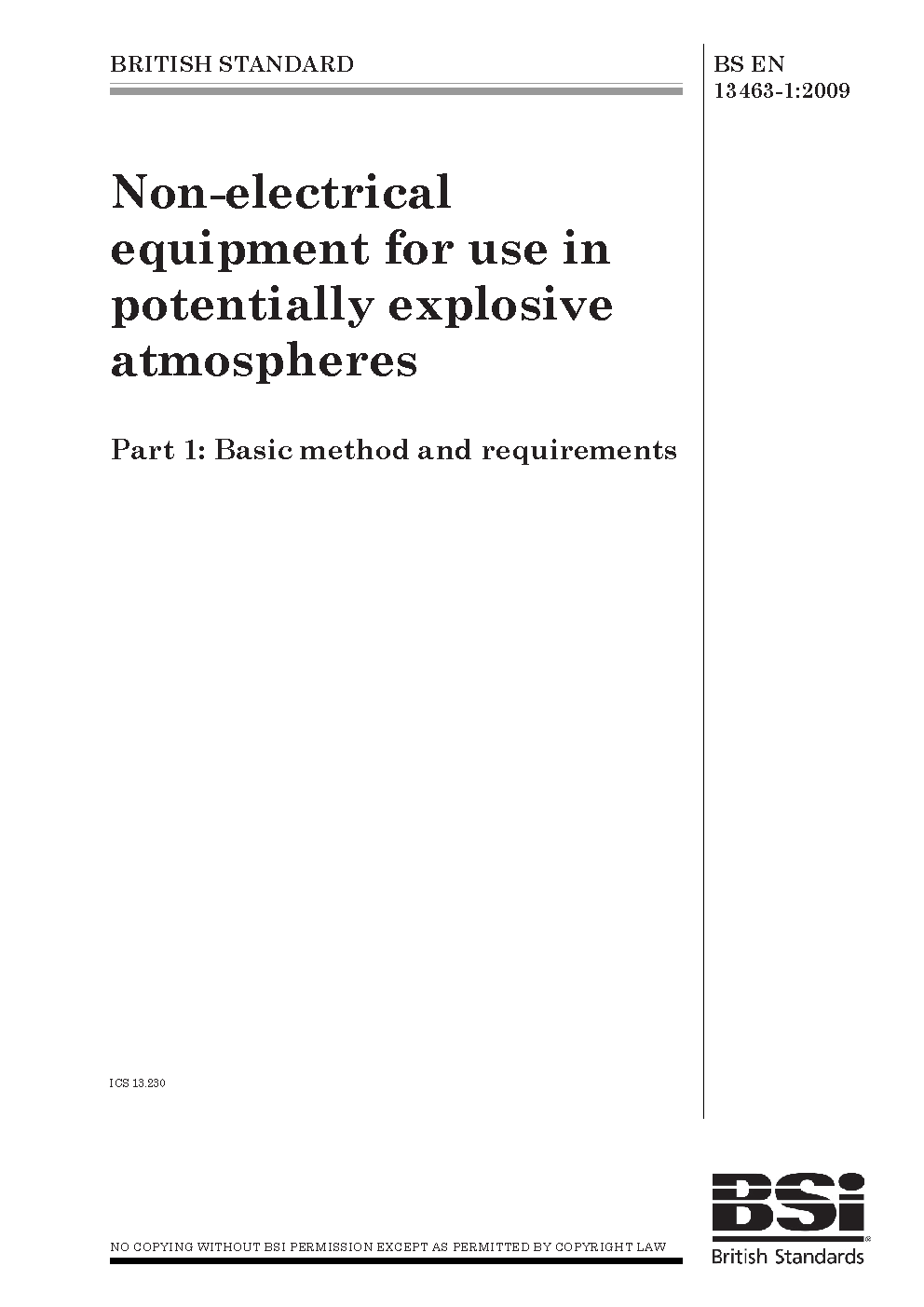 Non-electrical equipment for use in potentially explosive atmospheres Basic method and requirements
