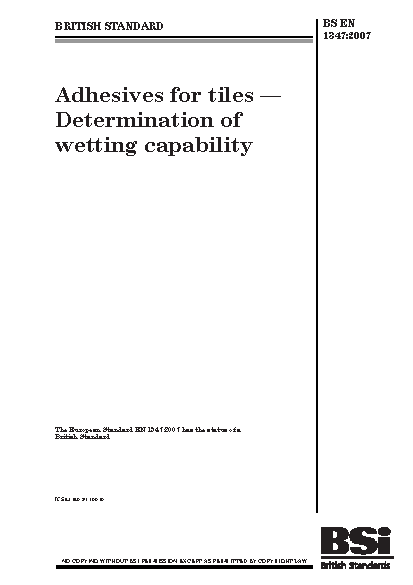 Adhesives for tiles. Determination of wetting capability