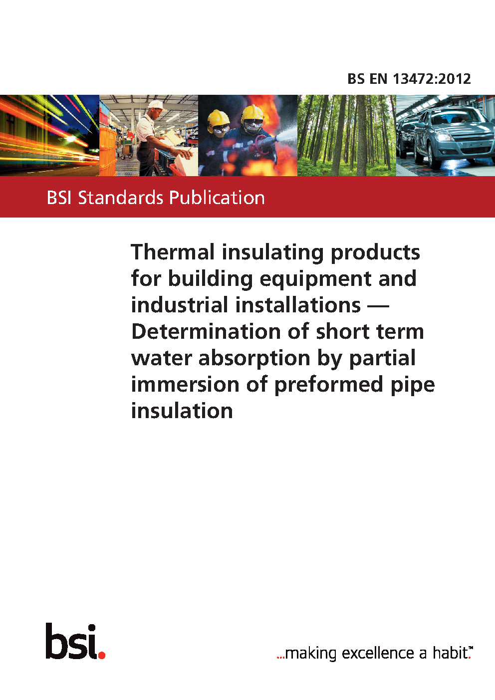 Thermal insulating products for building equipment and industrial installations. Determination of short term water absorption by partial immersion of preformed pipe insulation