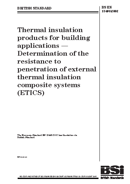 Thermal insulation products for building applications. Determination of the resistance to penetration of external thermal insulation composite systems (ETICS)