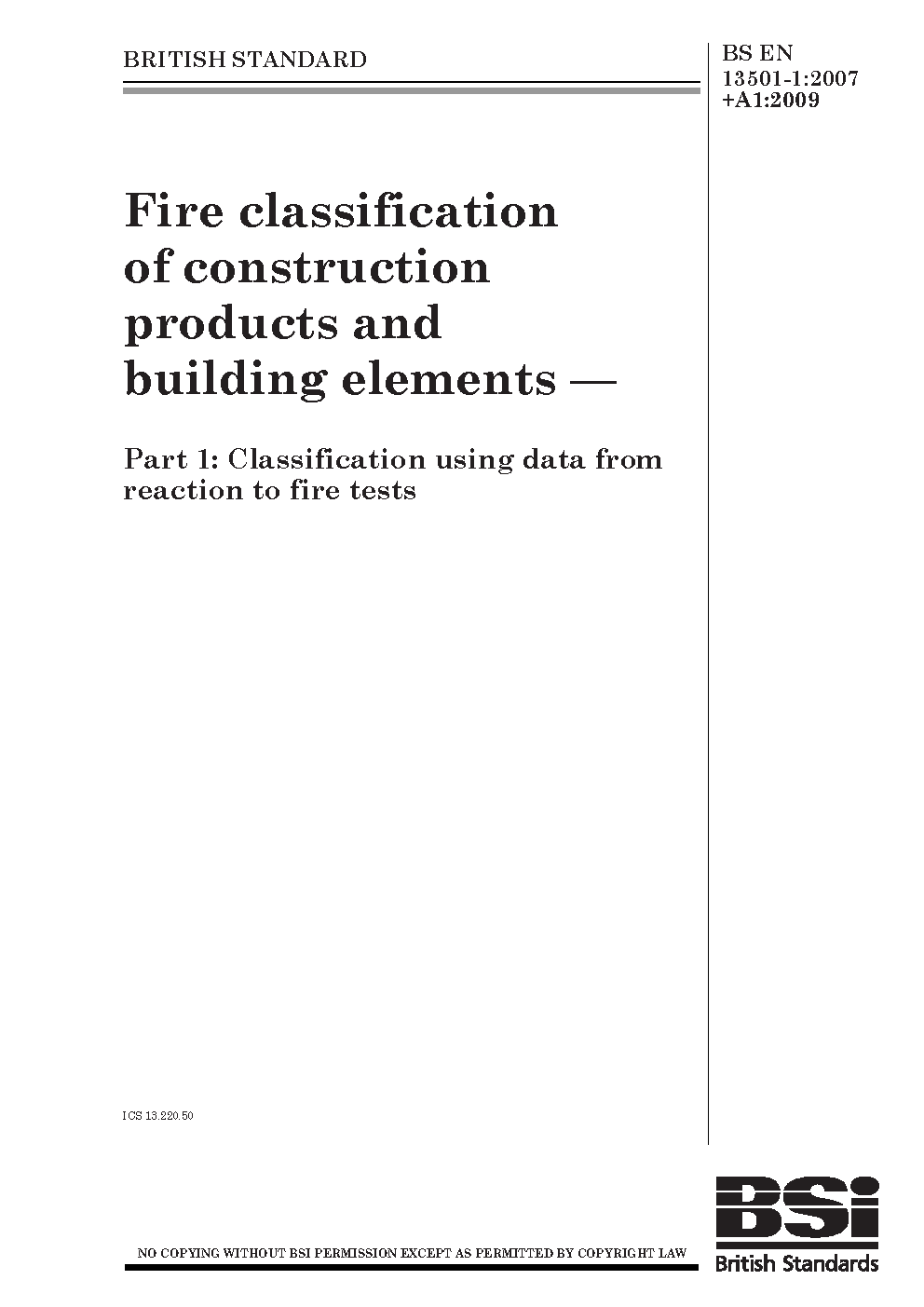 BS EN 13501-1:2007+A1:2009
