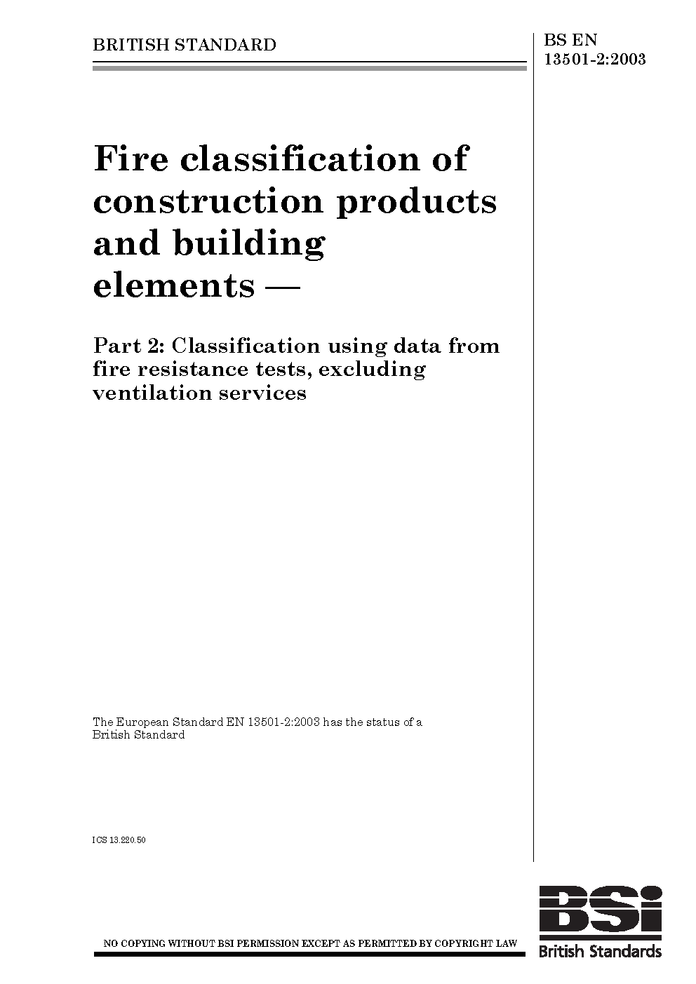 BS EN 13501-2:2003