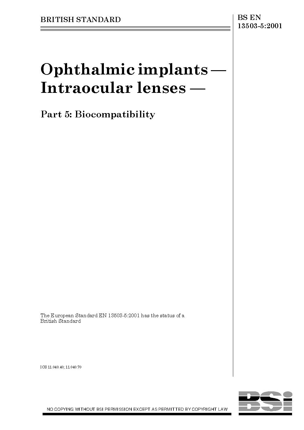Ophthalmic implants. Intraocular lenses Biocompatibility